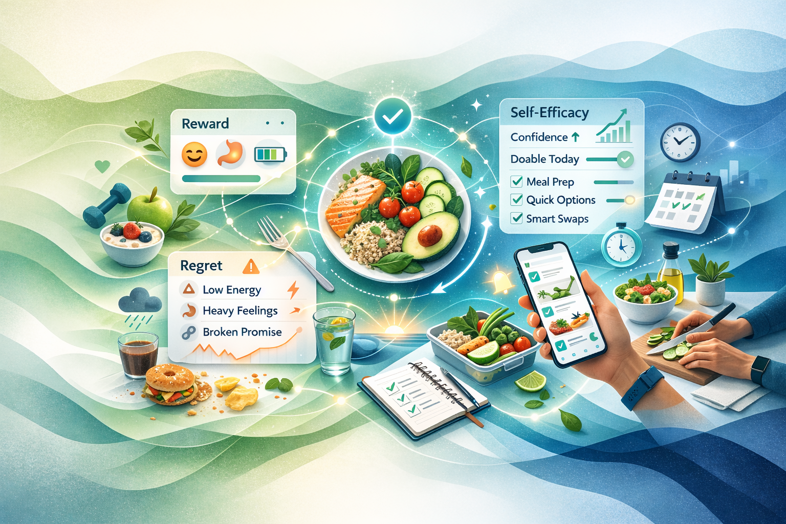 El segundo factor, el arrepentimiento anticipado, apunta a otro mecanismo. Las personas actúan más cuando pueden imaginar con claridad el coste de no actuar. En nutrición eso puede ser concreto, el bajón de energía por la tarde, el malestar estomacal, la sensación de haberse alejado de lo que querían hacer. También puede ser social, llegar al trabajo con niebla mental, estar menos presente con la familia, sentir que una promesa privada se rompió otra vez.